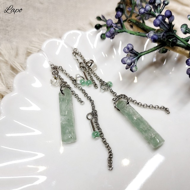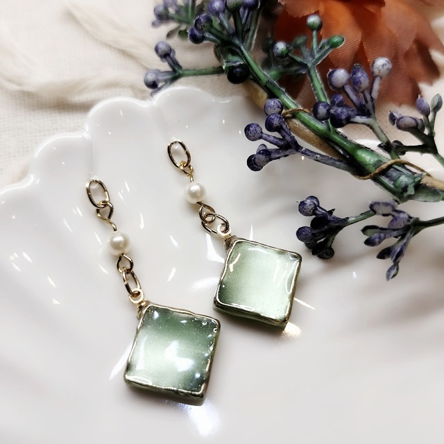 イヤリング変更可能✤クラッシュカラーピアス(グリーン)【ジュエルシリーズ】