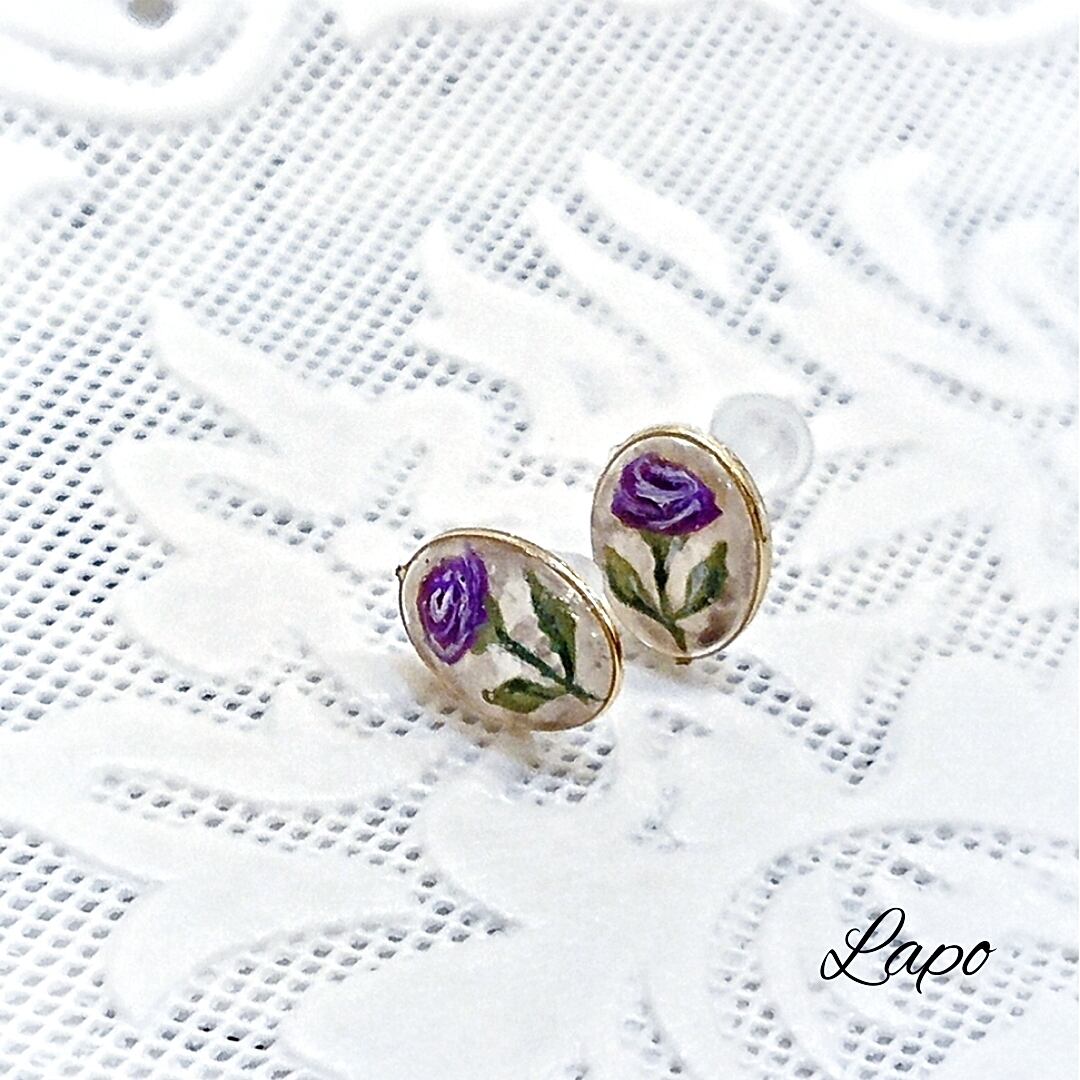 アンティークローズピアス(パープル)【ペイントシリーズ】
