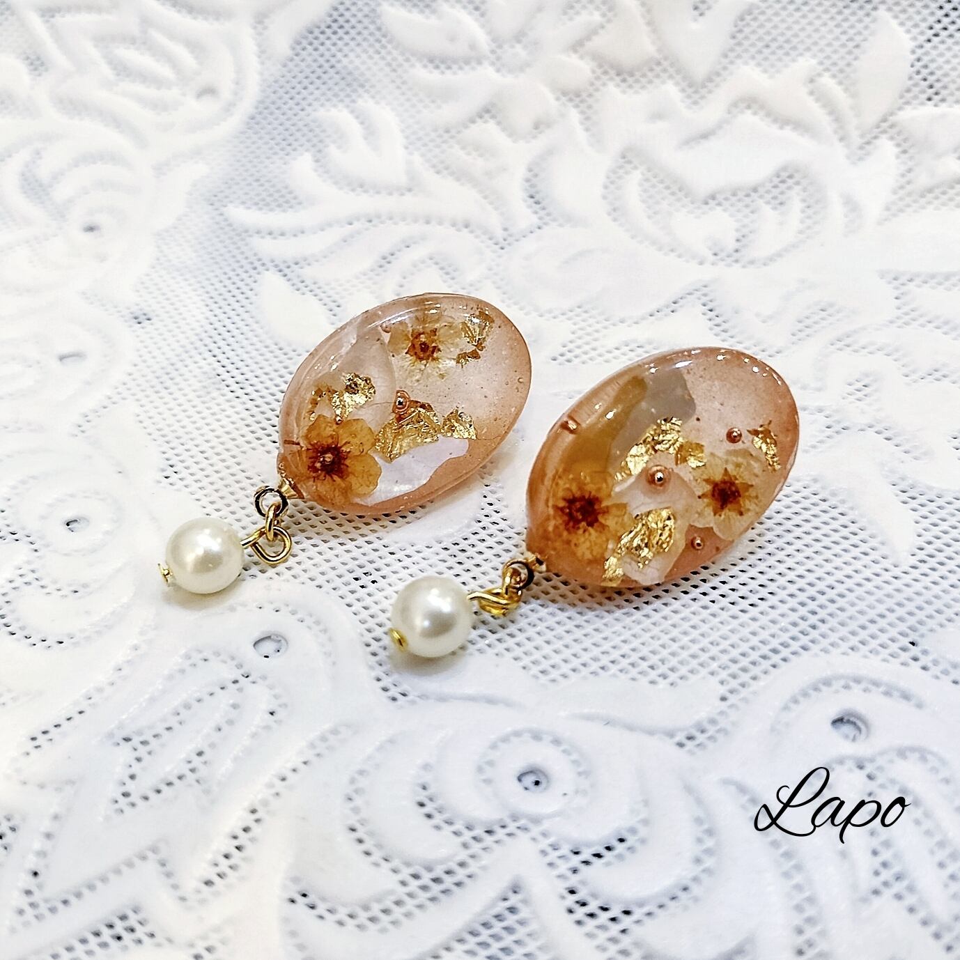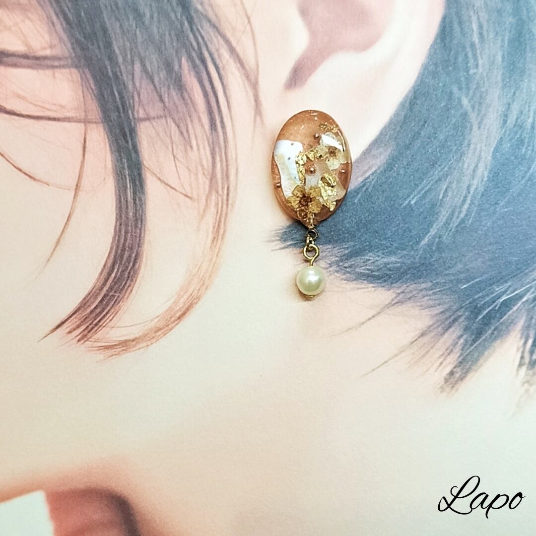 金箔と押し花とシェルのピアス【マテリアルシリーズ】