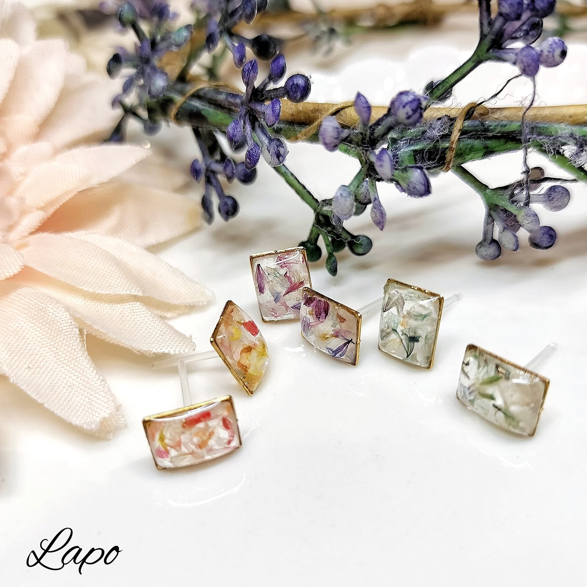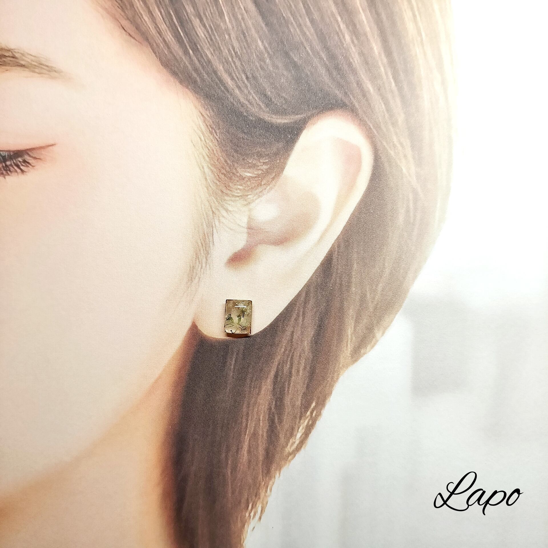 スクエアミニピアス(グリーン)【マテリアルシリーズ】