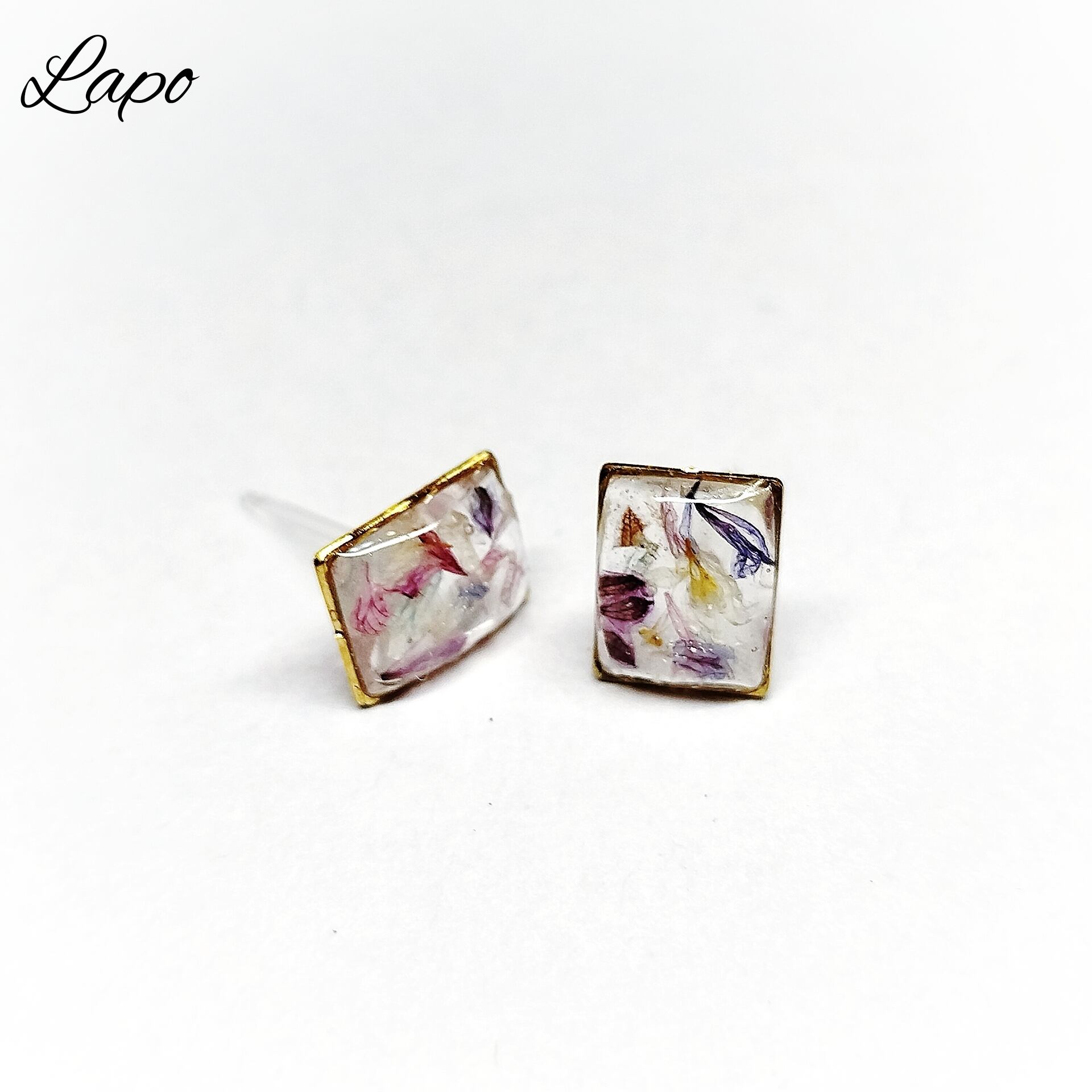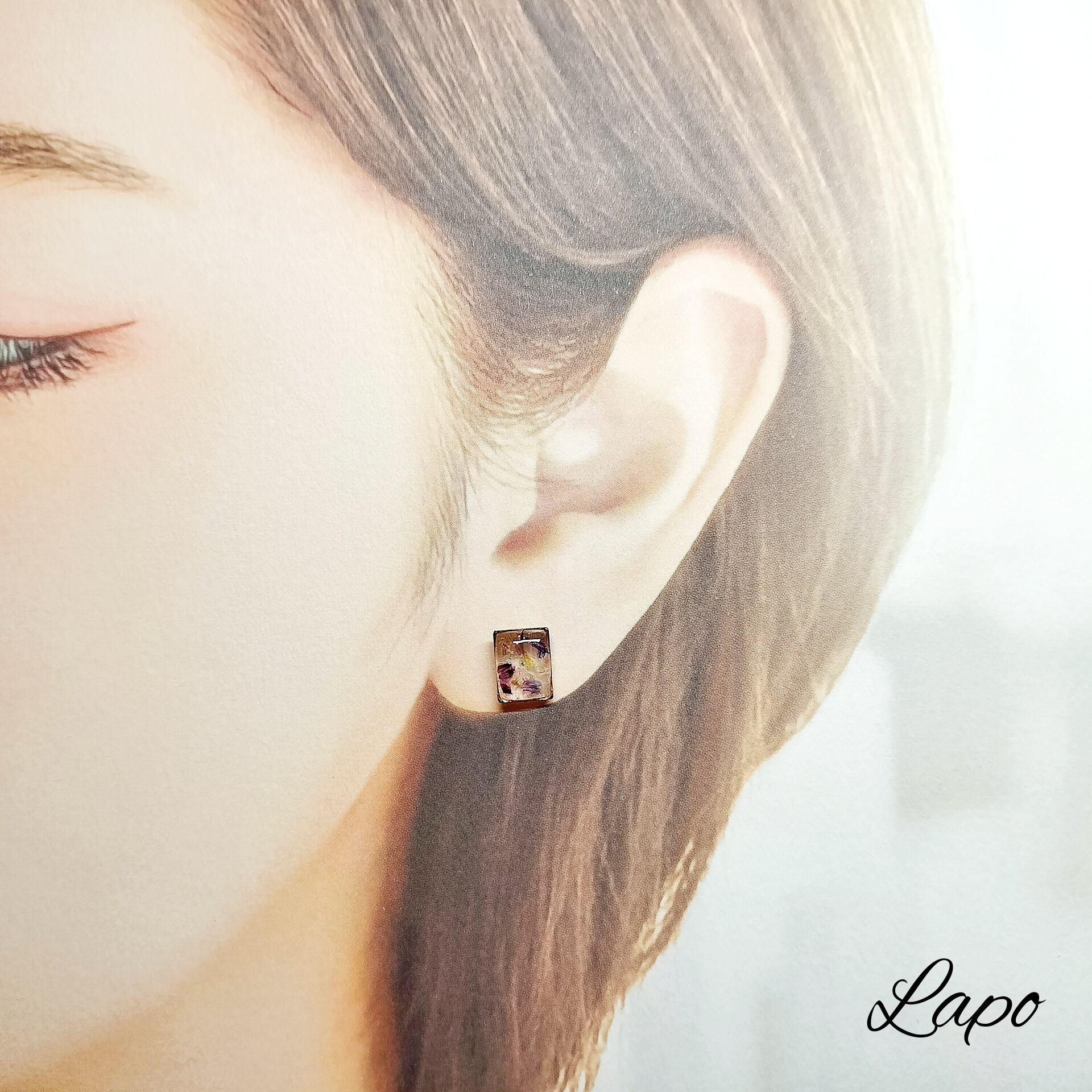 スクエアミニピアス(パープル)【マテリアルシリーズ】