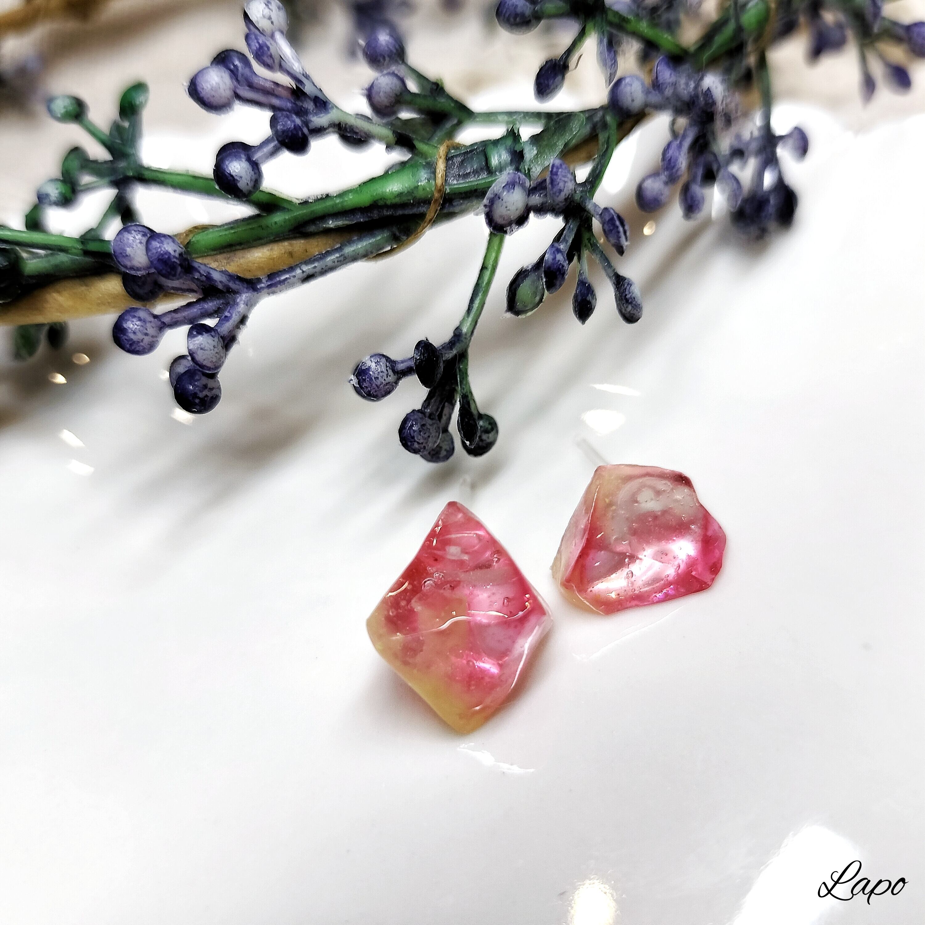 鉱石ピアス(レッド)【ジュエルシリーズ】