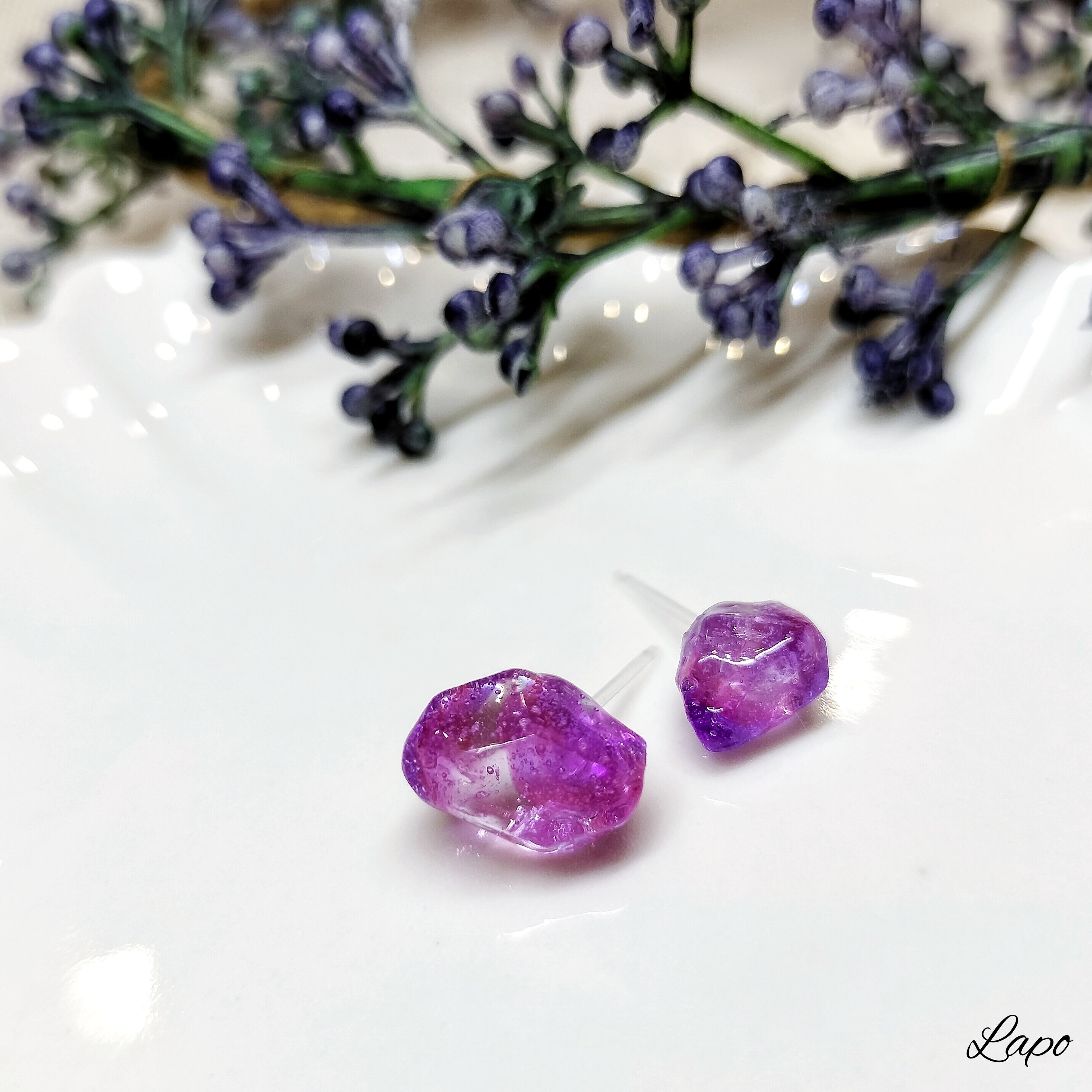 鉱石ピアス(パープル)【ジュエルシリーズ】
