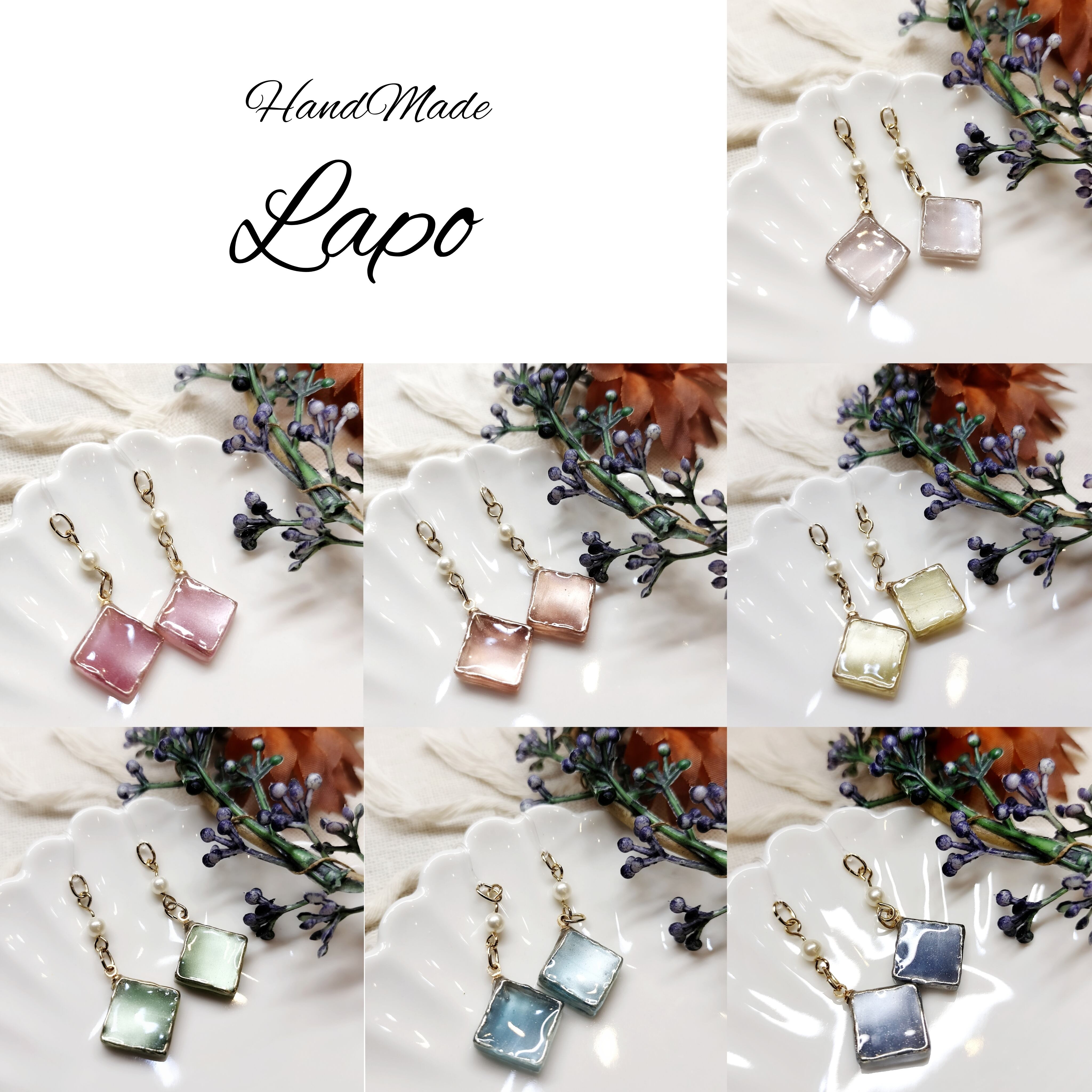 フック部分をステンレスピアスまたは樹脂イヤリングに変更可能です。