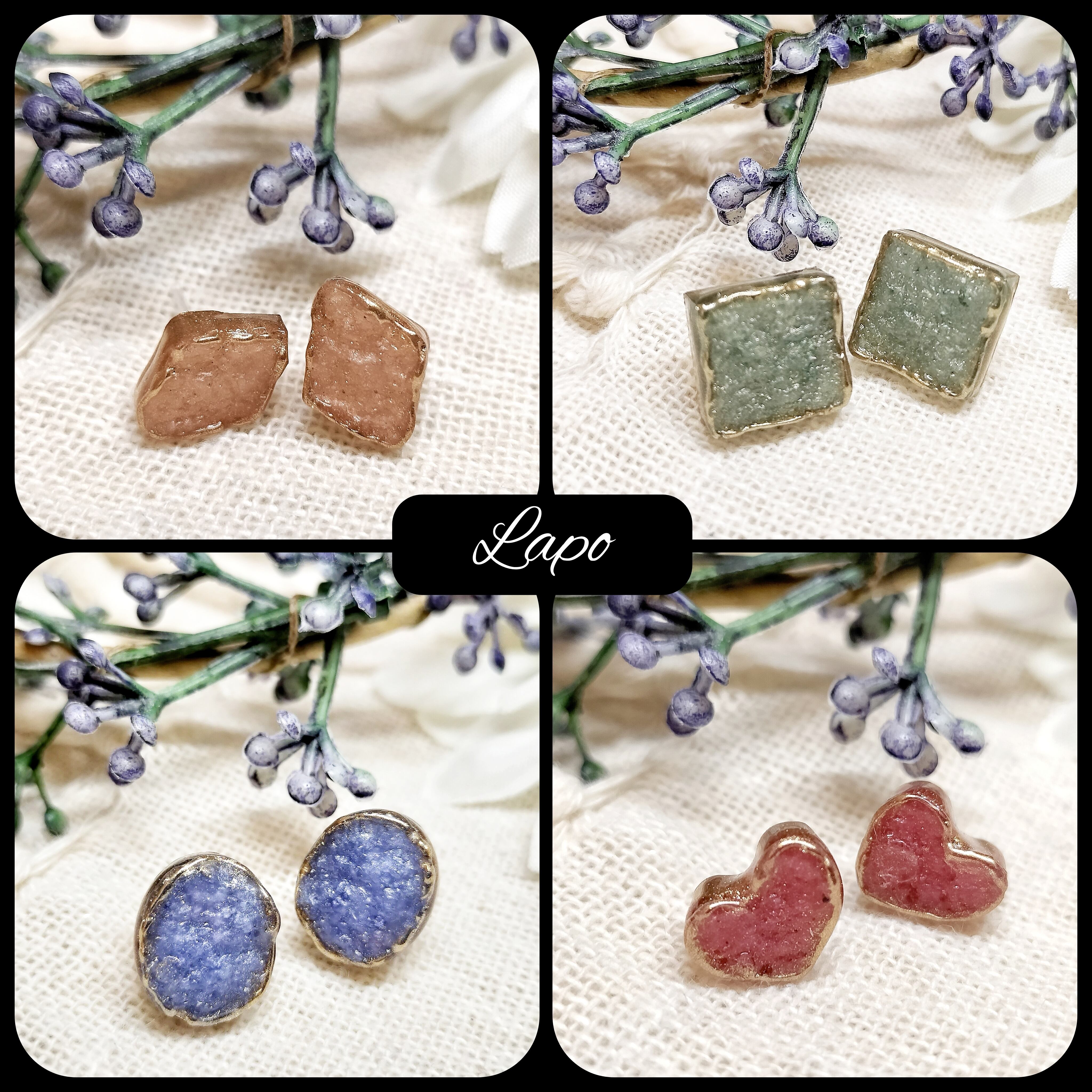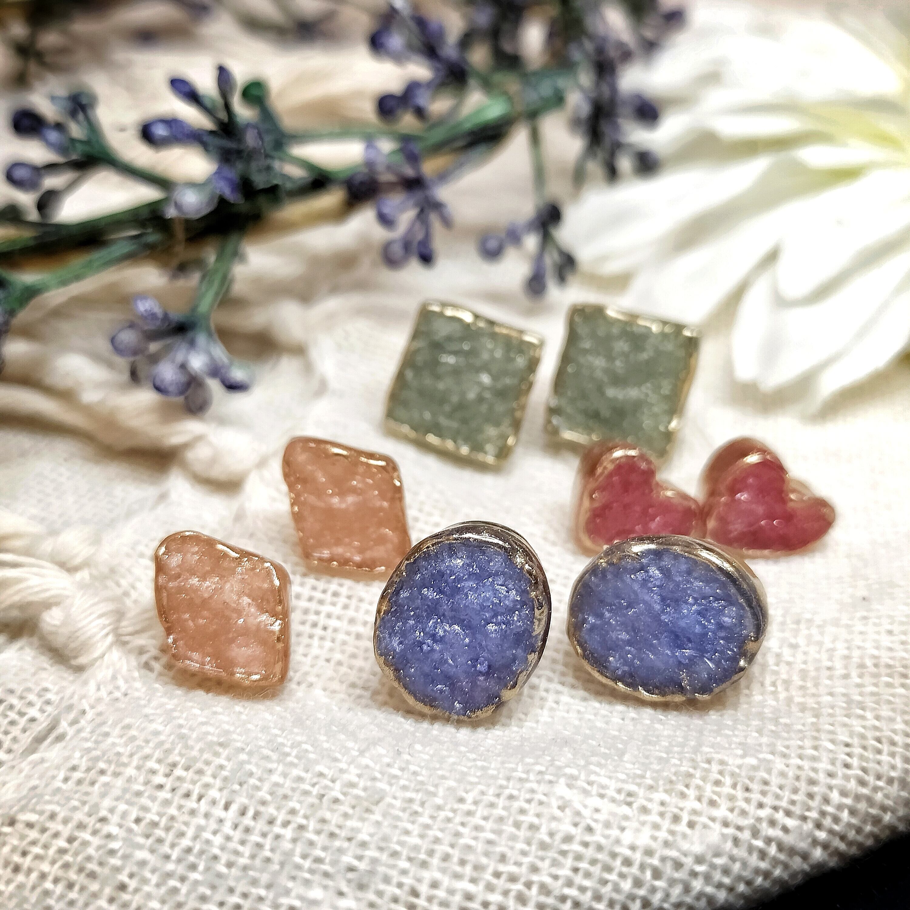 ゴツゴツ鉱石ピアス(ハート)【ジュエルシリーズ】