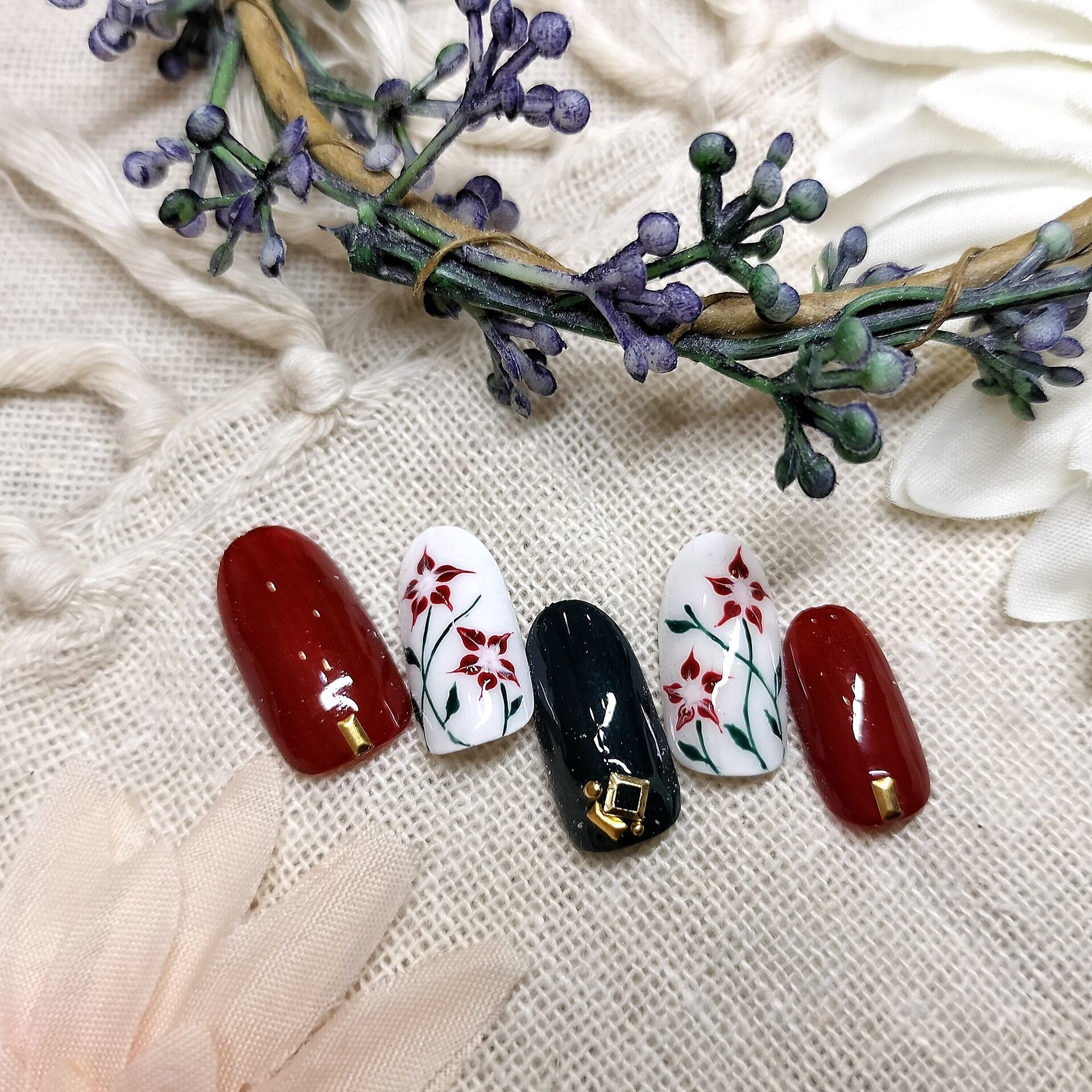 ◈お選び頂いたネイルチップの形やサイズのバランスに合わせてアートやパーツのサイズ、配置を多少変更させて頂く場合が御座います。