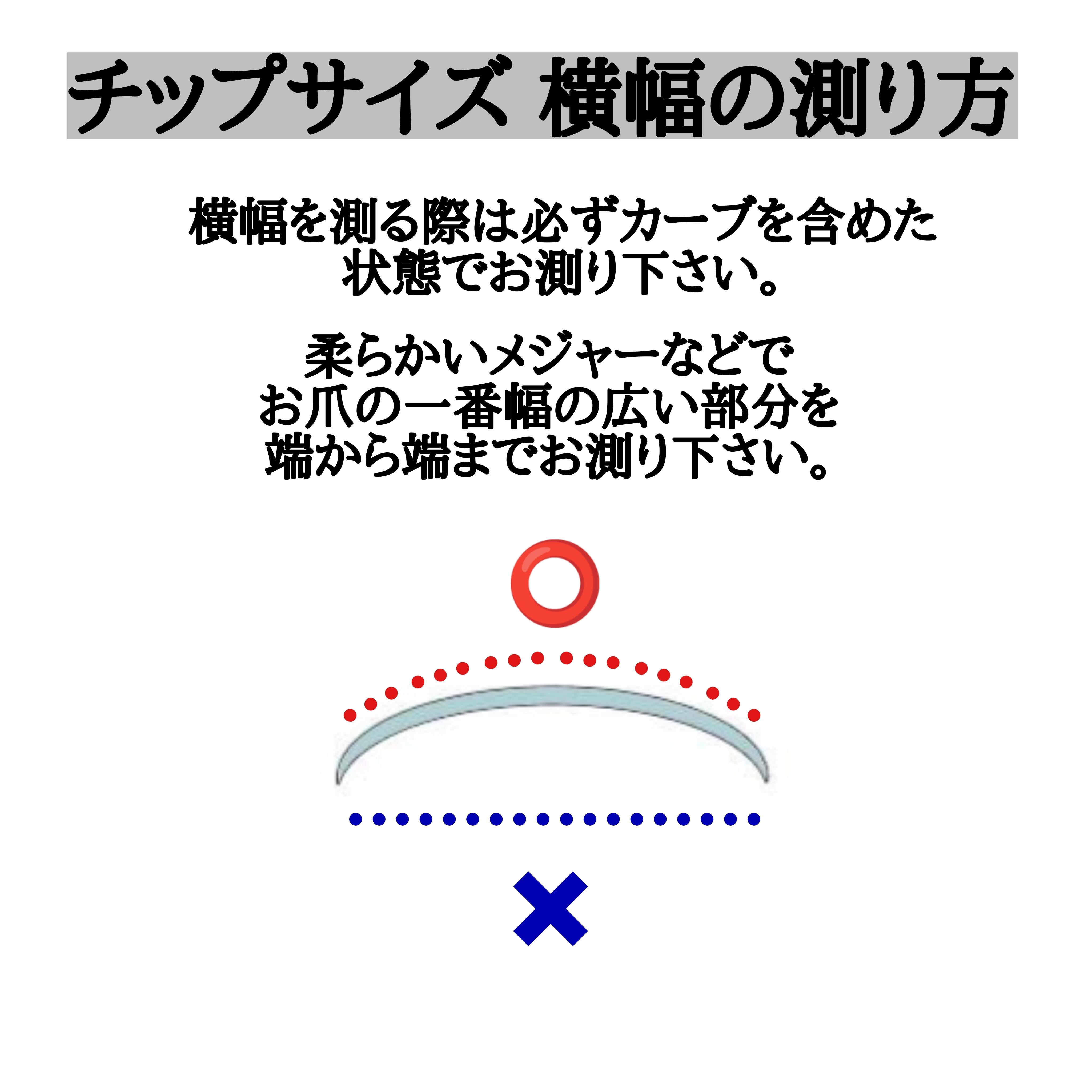 ◈やわらかいメジャー等でお爪の幅をお測り頂くか、サンプルチップをご購入の上サイズの合うものをお選びください。