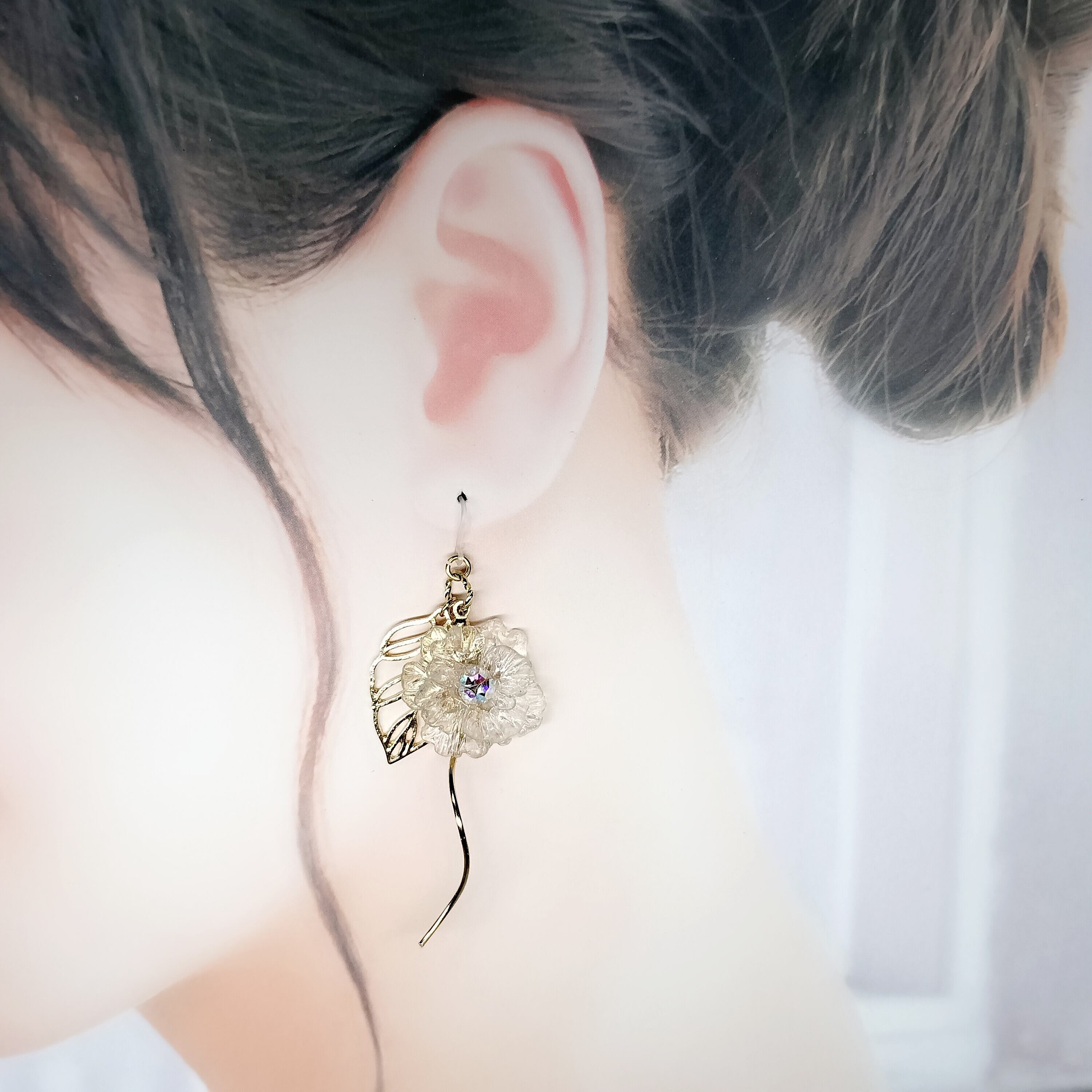クリアフラワーのぶら下がりピアス【ジュエルシリーズ】