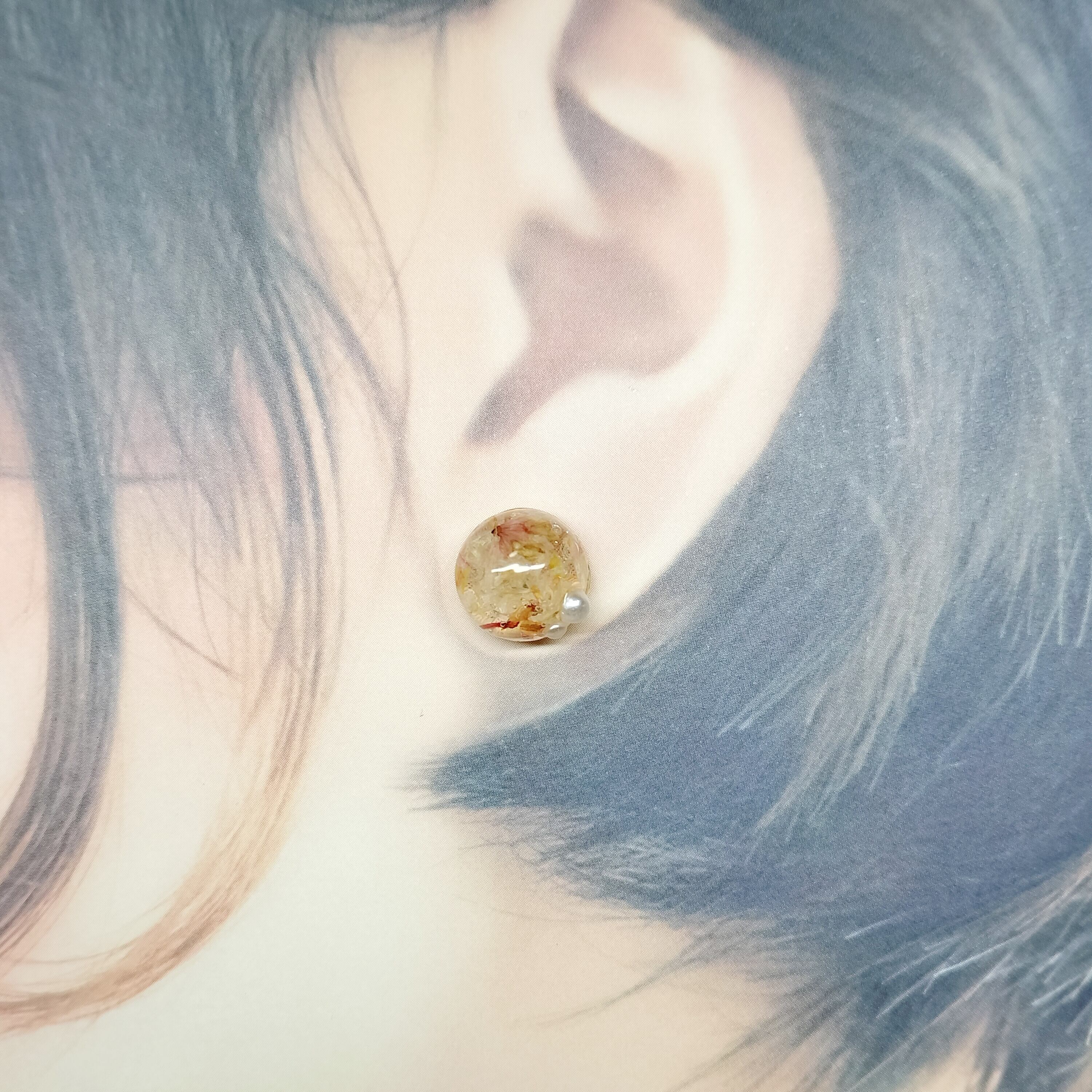 ポスト、キャッチ部分は樹脂を使用していますので金属アレルギーのる方も安心してご使用頂けます。