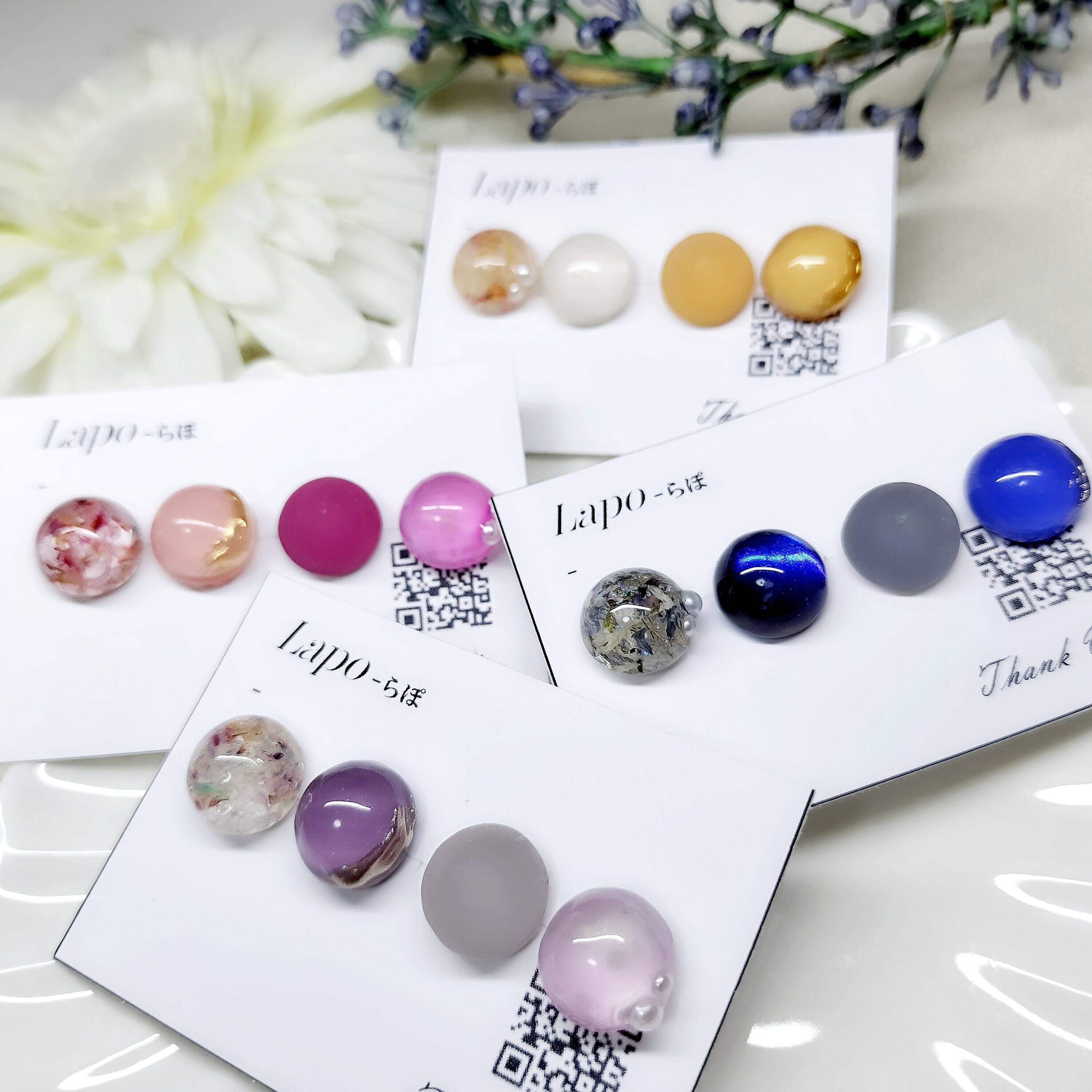 プチスフィアピアス4つセット(パープル)【マテリアルシリーズ】