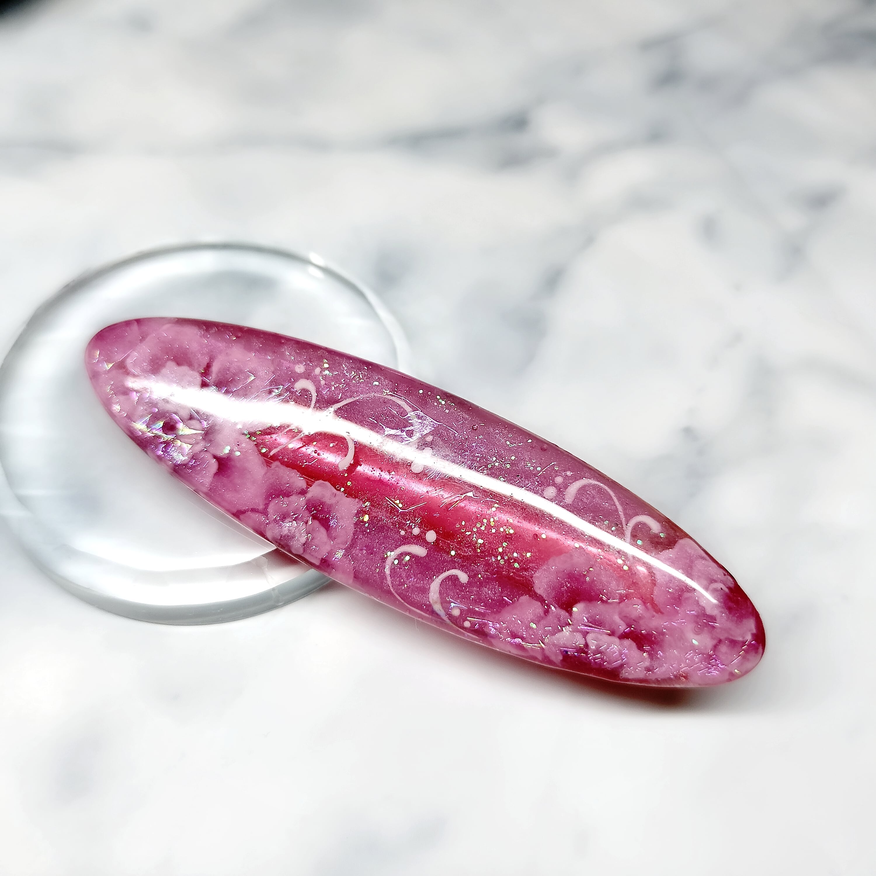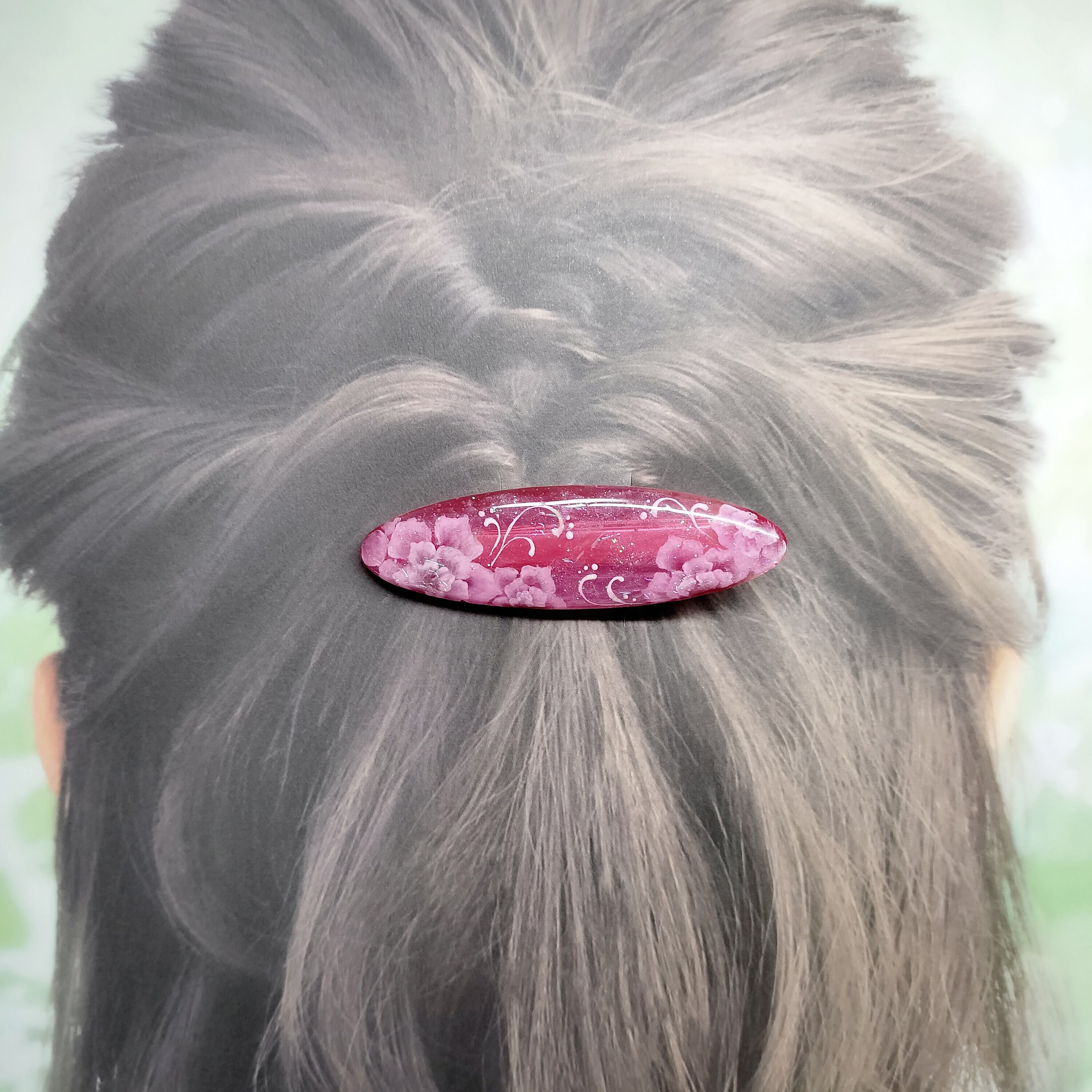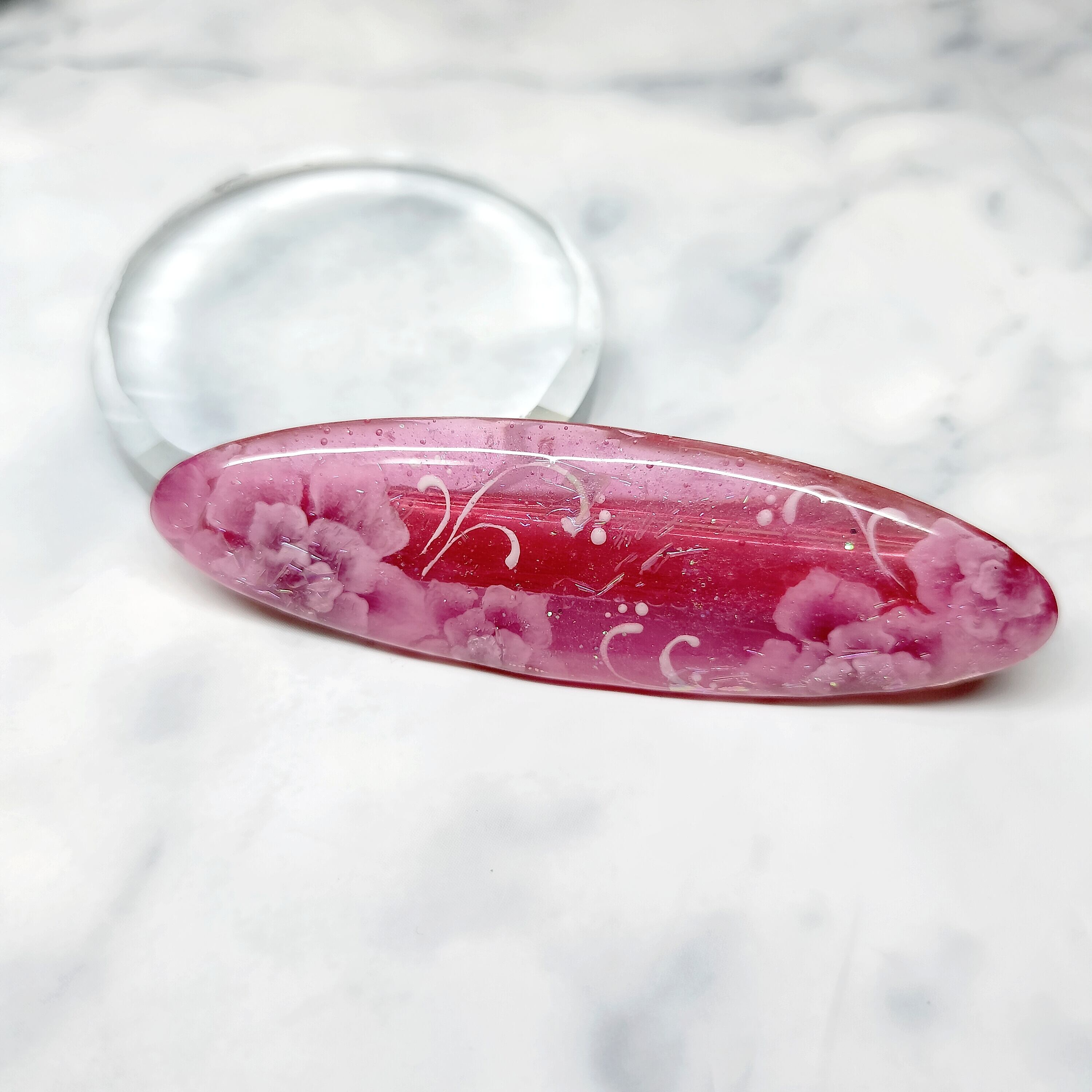 クリアピンクの花柄ヘアクリップ【ペイントシリーズ】